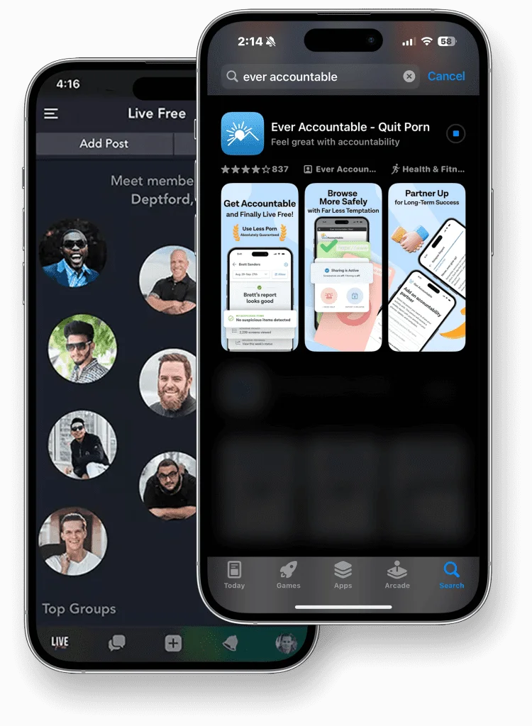 A scientifically-backed digital app package that includes highly effective accountability software paired with peer-to-peer community support to quit porn for good.